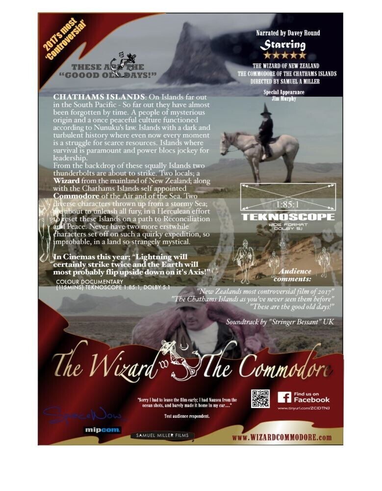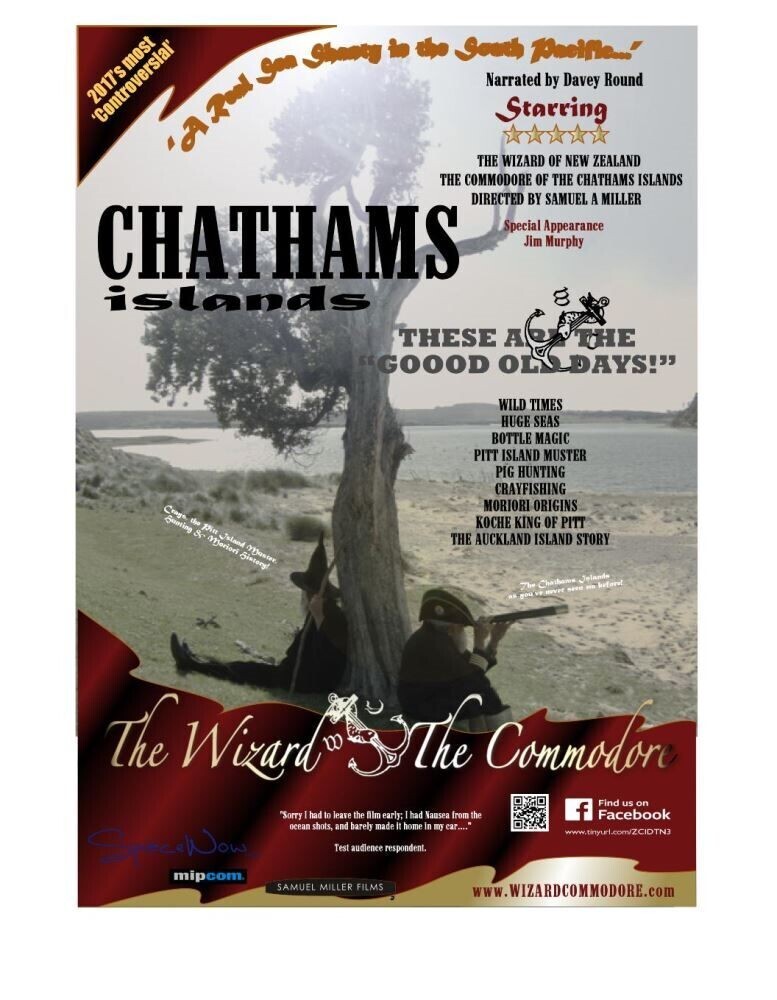 Ad to the cinema experience or if you've missed out: Your copy of "CHATHAMS ISLANDS - THE WIZARD & THE COMMODORE" 115mins of swash buckling history, hunting, fishing and fun with the Wizard & the Commodore on the Chathams Islands!!